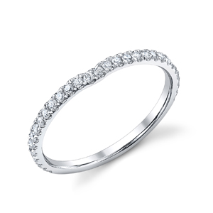 This pave diamond halo ring is all about the sparkle. The slim, diamond set band ensures that the diamonds are prominently displayed, and the round-cut diamond center stone looks even bigger when surrounded by a twinkling diamond halo. A true diamond-lover's delight.