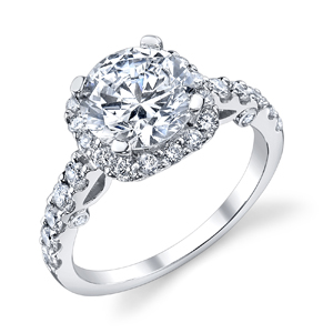This perfect engagement ring is a Sandra Diamond Halo Ring (.78 ctw.). The unique design of the Sandra Diamond Halo Ring (.78 ctw.) could come with a princes cut diamond or a cushion cut diamond. You can view all our Halo engagement rings, Round Cut engagement rings, Cushion Cut engagement rings.We have a full collection of engagement rings. Create the perfect ring by matching a white gold, yellow gold or platinum engagement ring setting of your choice to any of our thousands of diamonds.