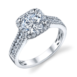 This perfect engagement ring is a Taylor Pave Round Cut Diamond Ring With Cushion Halo (.52 ctw.). The unique design of the Taylor Pave Round Cut Diamond Ring With Cushion Halo (.52 ctw.) could come with a princes cut diamond or a cushion cut diamond. You can view all our Halo engagement rings, Round Cut engagement rings, Cushion Cut engagement rings.We have a full collection of engagement rings. Create the perfect ring by matching a white gold, yellow gold or platinum engagement ring setting of your choice to any of our thousands of diamonds.